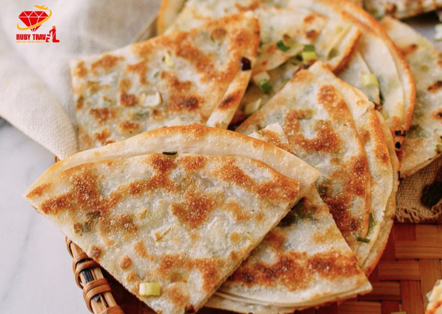 Một loại bánh rán giòn, dày được làm từ bột mì và hành lá, thường được ăn với nước chấm hoặc kèm theo sữa chua.